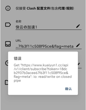 # ==问题①== #### 导入节点或更新节点出现下面这种错误  ## ==解决办法1== 导入或更新时不要打开加速器软件的开关 在软件设置里把系统代理开关关掉 再次导入或更新 (每个设备显示的名称不同 根据自己设备设置即可)  ## ==解决办法2== 如果关掉开关导入还是出现上面这个问题替换URL里的域名使用新域名的订阅信息再次导入